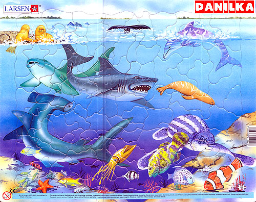 Удивительный подводный мир: морские черепахи, дельфины, рыба-молот, акула и многие другие. Проще всего собирать паззл, отталкиваясь от рамки, и с краев идти к середине. Со временем картинку можно будет покрыть специальным клеем и украсить ей комнату. Игрушка развивает мелкую моторику и кругозор. Размер рамки 28,5х36,5см, количество деталей 92. |
