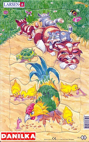 Яркий паззл с множеством животных – посчитайте цыплят, котят, червяков, повторите цвета и найдите на картинке всех персонажей. На подобных паззлах-картинках малыши развивают речь, рассказывая, кто и чем здесь занимается. Но сначала нужно собрать картинку: есть рамка-подсказка и 20 деталей. Игрушка поможет развить мелкую моторику и внимание малыша. Размер паззла 28,5х18см.
